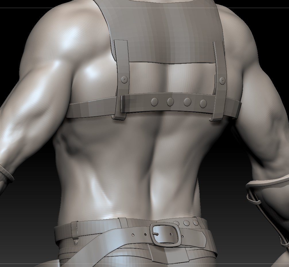 The workflow began in ZBrush, where I sculpted the anatomy entirely from scratch. Once the organic base was established, I moved to Maya to model all the hard-surface accessories and armor pieces.
